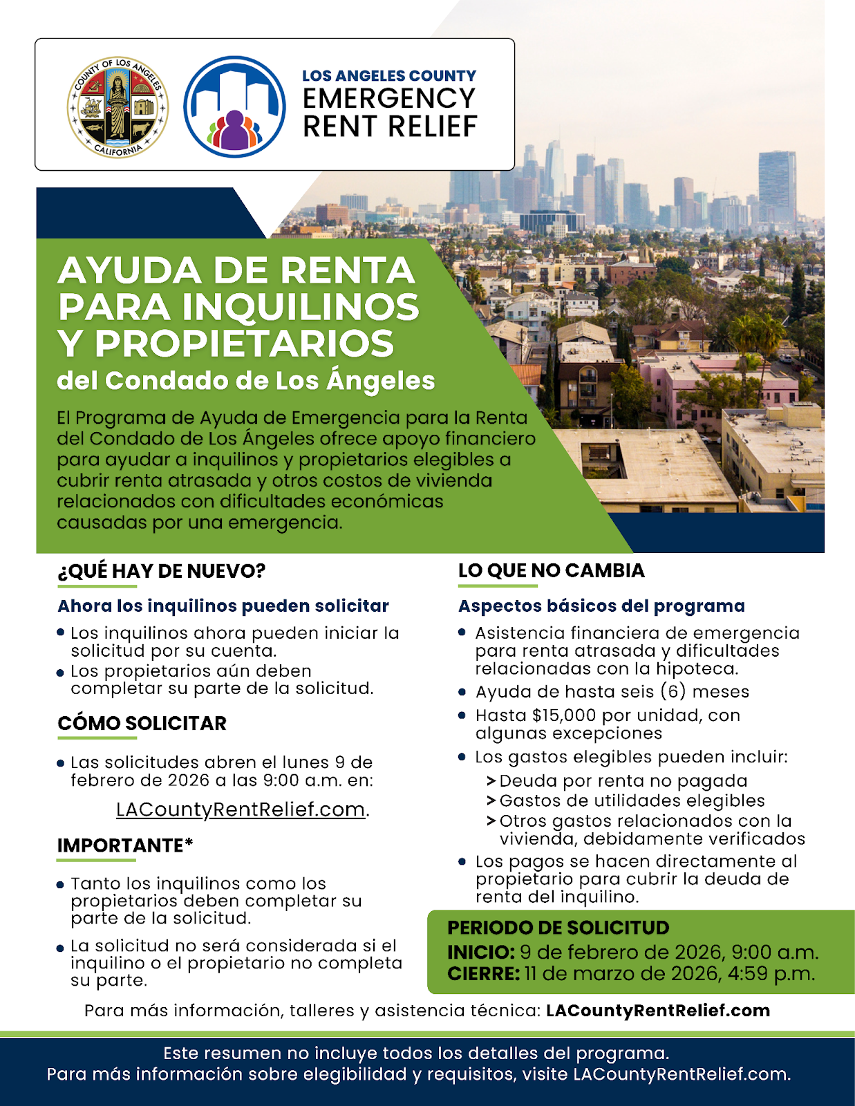 The Los Angeles County Emergency Rent Relief Program (LAERRP) has officially re‑opened and is accepting applications from tenants experiencing financial hardship.